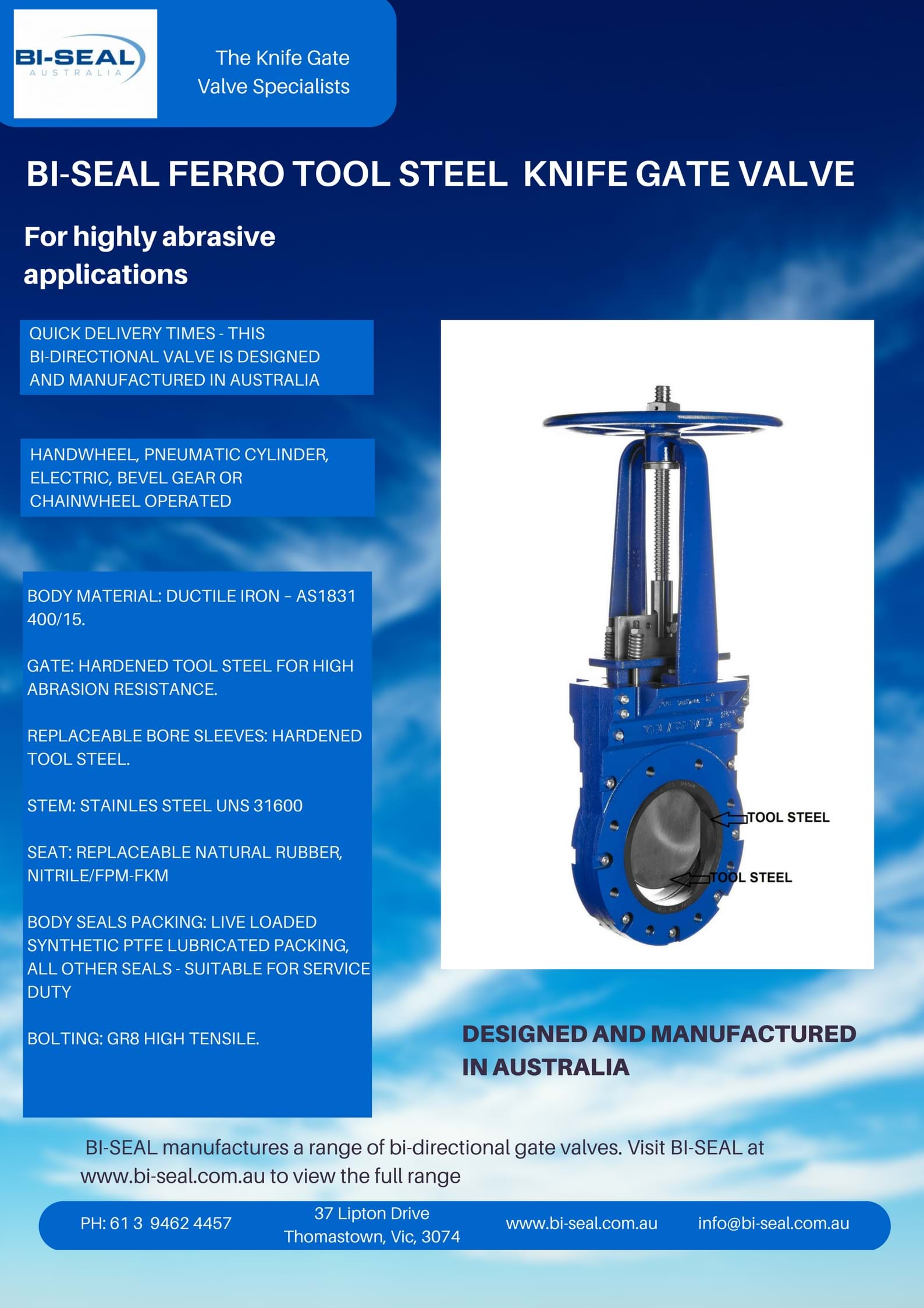 Quick delivery times - This valve is designed and manufactured in Australia